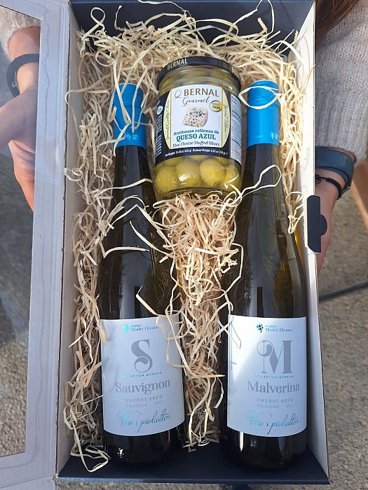 Dopřejte si chvíle gurmánského požitku s touto elegantní sadou, kde se snoubí špičkové moravské víno s luxusní středomořskou pochoutkou. Ideální pro večer ve dvou, jako dárek pro milovníky vína nebo jako vybraný firemní dar.